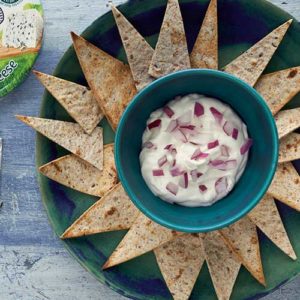 Chips and dip are a true match made in heaven, so pop this beautiful combo in the middle of the table at your latest get-together and let everyone dive in with delight. These homemade tortilla chips with blue cheese spread dip are pretty easy to pull together; just pop some sliced tortilla wraps under the grill for a couple of minutes, and for my fuss-free cheese dip, all you need to do is mix two of my lusciously creamy Blue Cheese triangles with Greek yogurt and crunchy red onion. Job done!