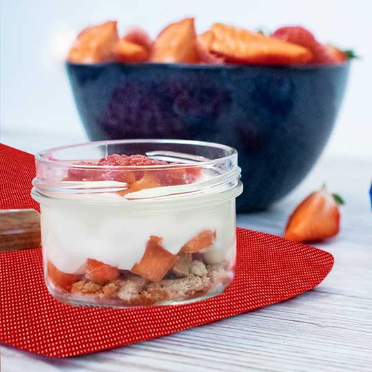 This is one stunning showstopper starter! While it may look super fancy, it’s surprisingly easy to make. Big hunks of sourdough bread make the perfect base for this sweet yet savoury combo. Spread on a thick layer of my extra light cheese spread and top with tangy cranberry sauce, juicy peach slices and sweet Parma ham. Mmmm…